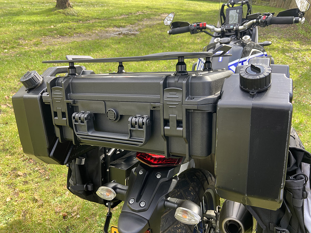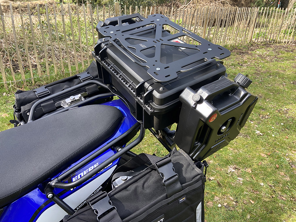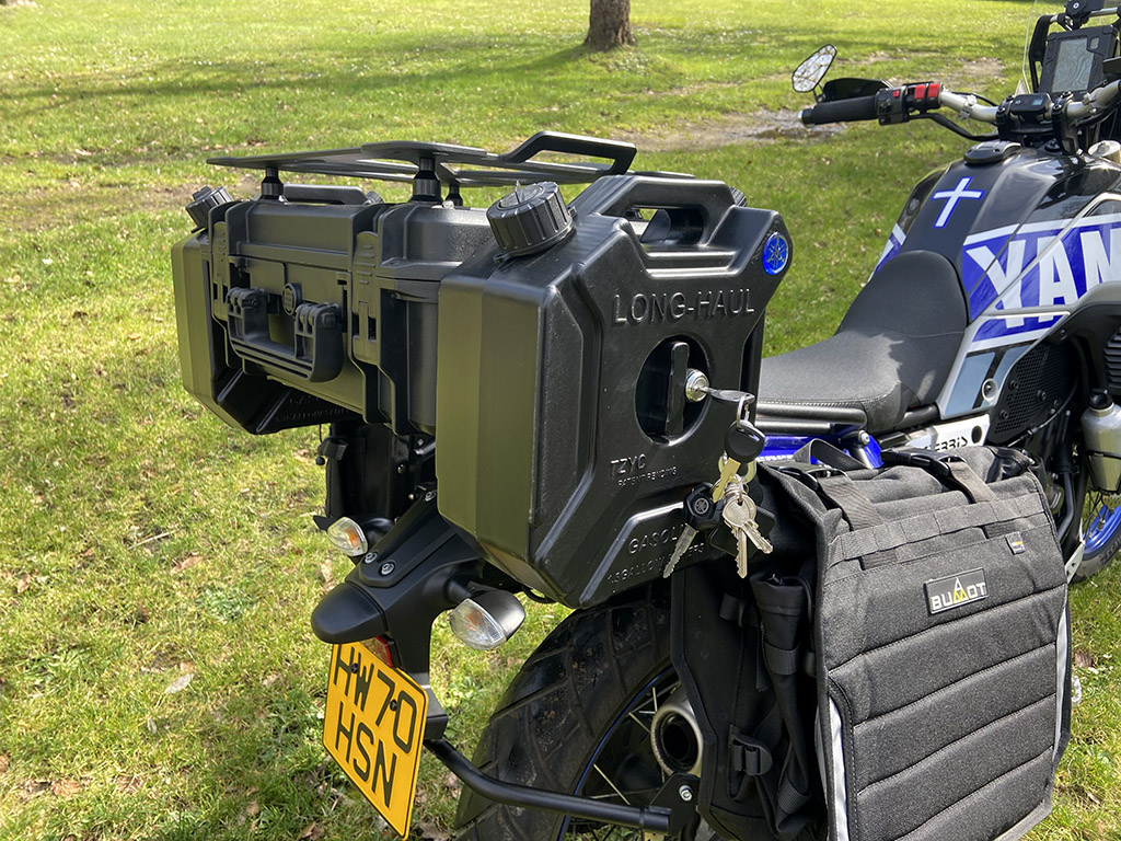 We all use our beloved bikes for different purposes. Many purchase a Tenere 700 for hard off-road riding, some for trail riding and others for their daily commute. Mine does a bit of everything but I mostly use it for touring. Some might choose other bikes for long distance hauls but I love the stance and handling of the T700 and it suits me just fine. One thing I’ve wanted to do for a while now is to find a way to carry fuel and water with me and it’s been a bit of a head scratcher, but with the upcoming tour into Europe now on the horizon, I decided to buckle down and figure something out. In the video below you’ll see my solution which has actually worked better than I anticipated. It builds on the Peli case top box mod that I made a while back, seamlessly adding a 5L fuel can to either side.