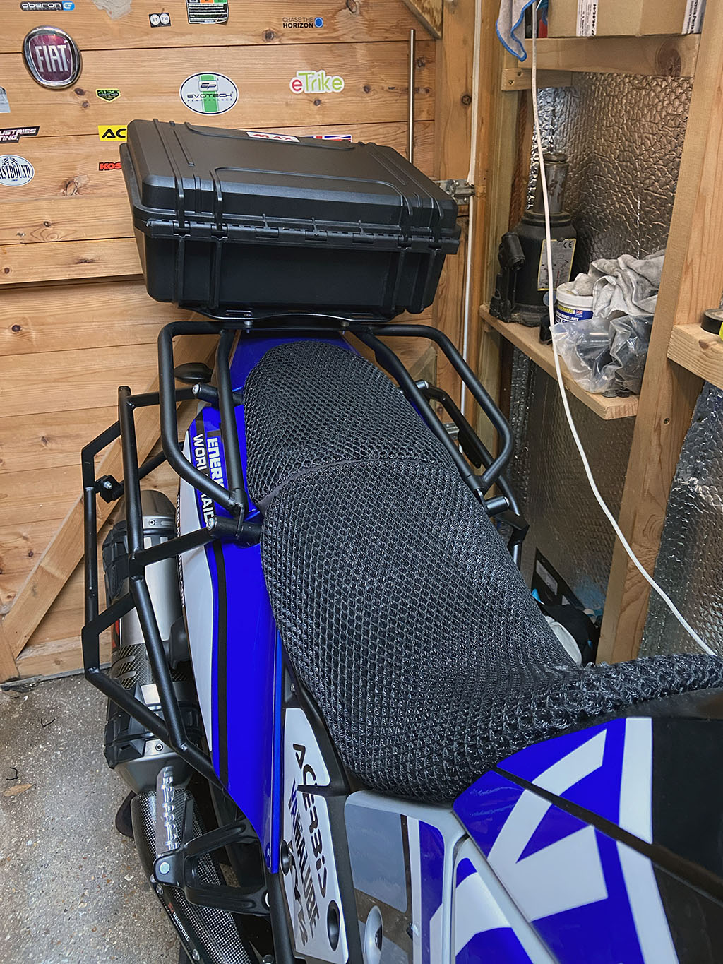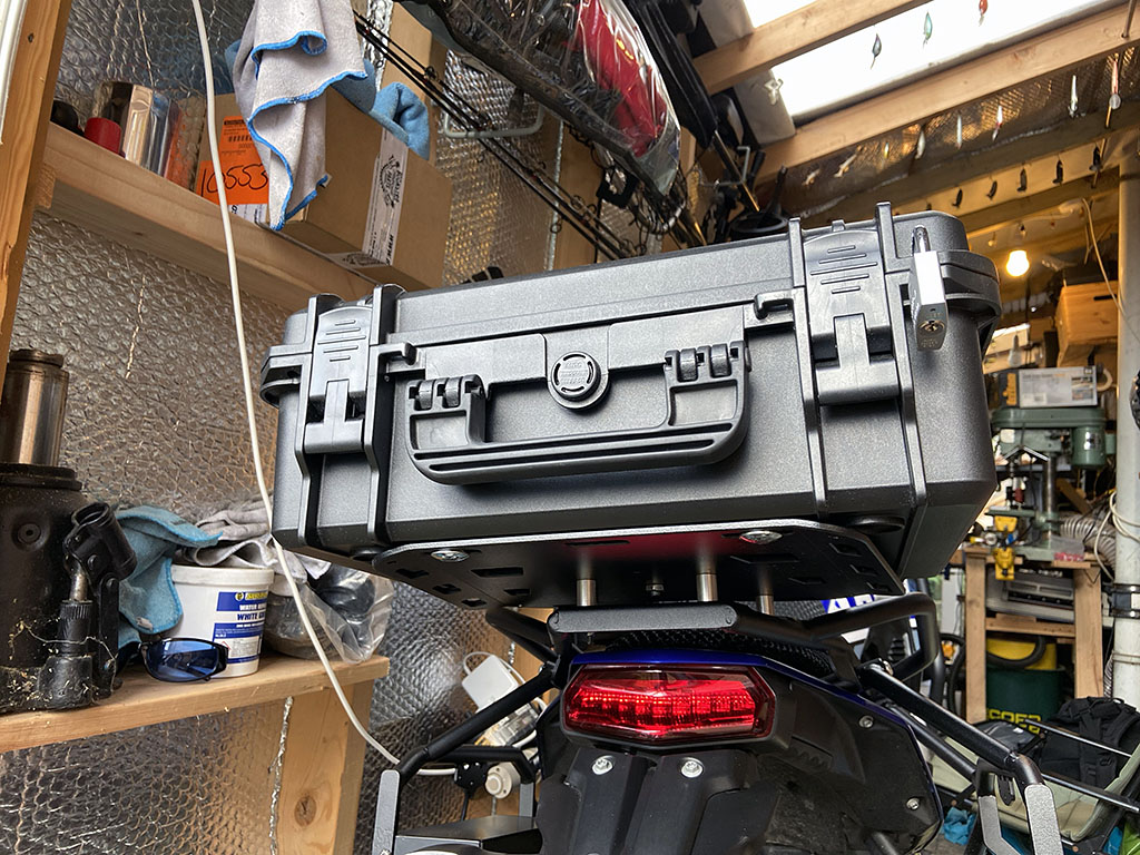 A plethora of riders have done this before so give me zero credit for this modification. In fact, a member of a forum I’m part of posted something very similar just a few days ago and that post inspired me to do this. A few years ago I purchased 3 MAX PELI style cases and they were and are brilliant. I’ve owned a few actual PELI cases and these MAX cases are just as good at a fraction of the price. I also wanted a low profile case and again the ones I already owned fit the bill perfectly. What I really liked about Toppie’s mod was the rack he installed on the top. That seriously increased the capacity of the 20L MAX case whilst leaving the setup low profile when extra capacity was not required.. Smart! Anyways, it’s pretty much all in the video below so allow me to bore you to death for 5 minutes and 40 seconds and then if you’re interested to do something similar the links to the parts I used are below the video. Oh and do remember to subscribe to both the blog and the Youtube channel so I can bore you some more!